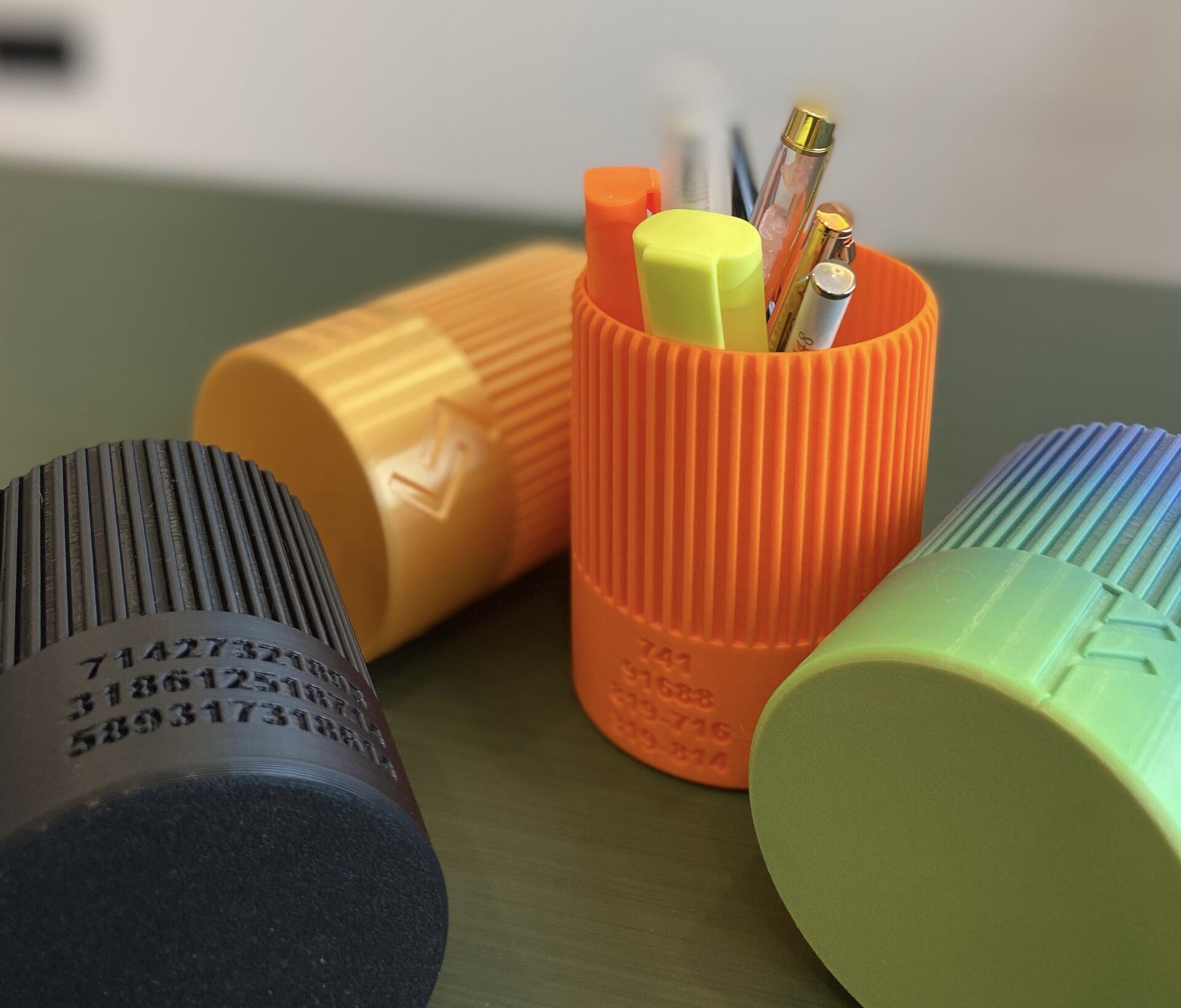 3D yazıcı ile tasarlanıp üretilen kalemliğimiz üzerinde şans, bolluk ve bereket rune sembolleri bulunmaktadır. Ayrıca Grabovoi'nin sayı sekansları kullanılmıştır. Kullanılan sayı dizileri: