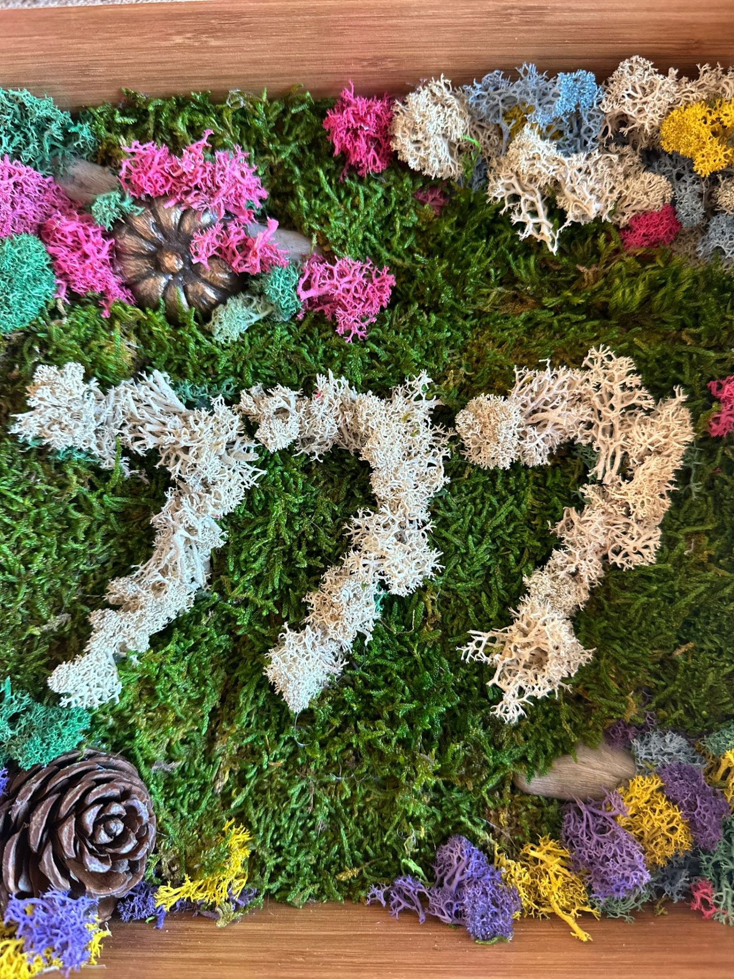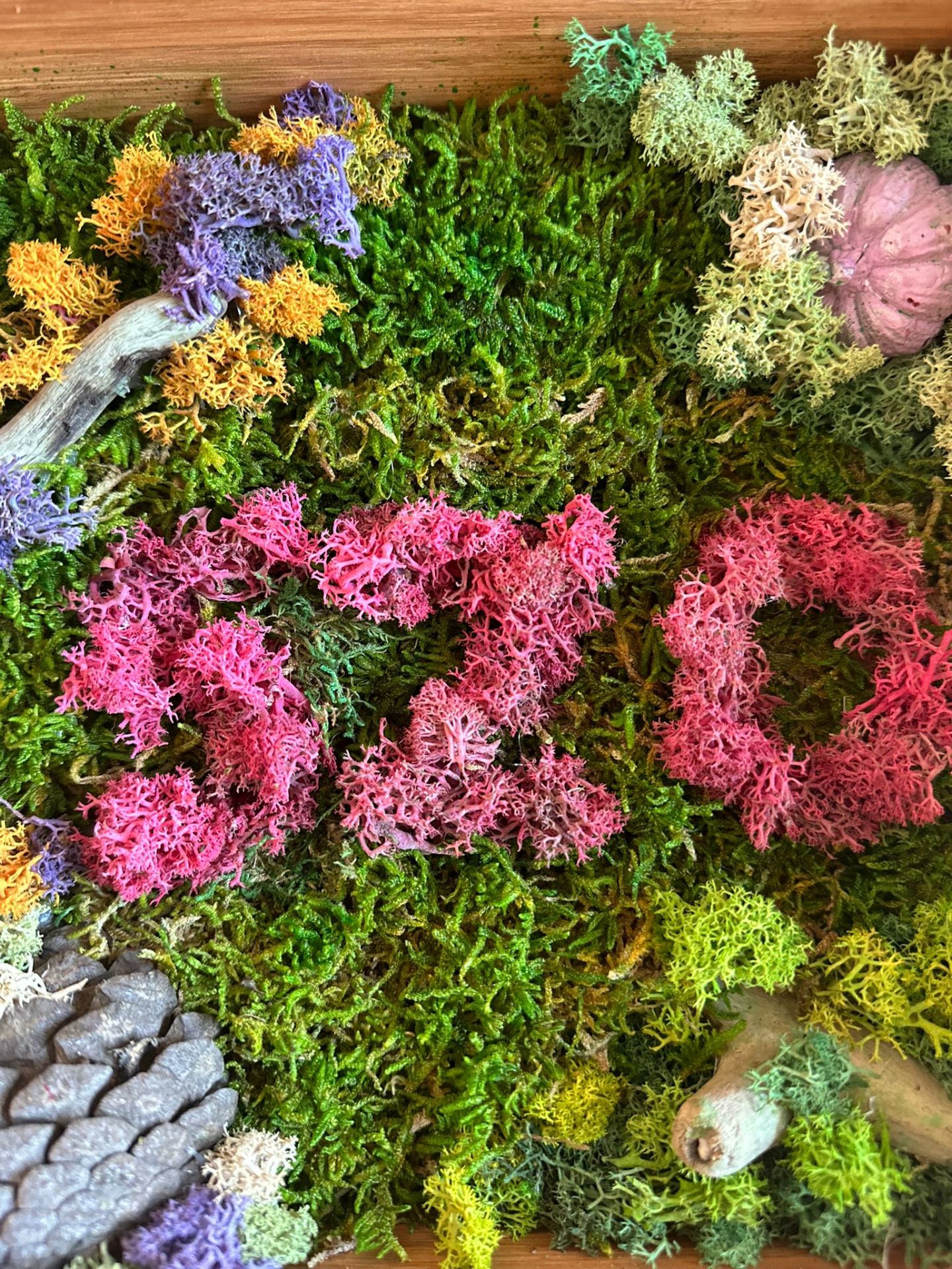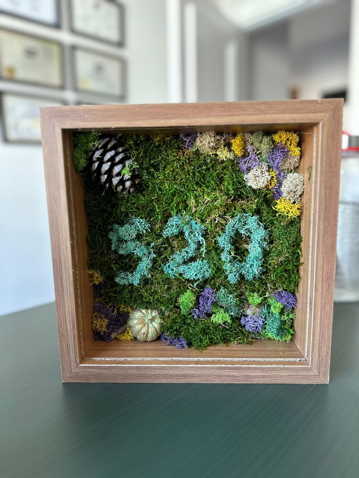 Gerçek mumyalanmış yosunlar ile yapılmıştır.
